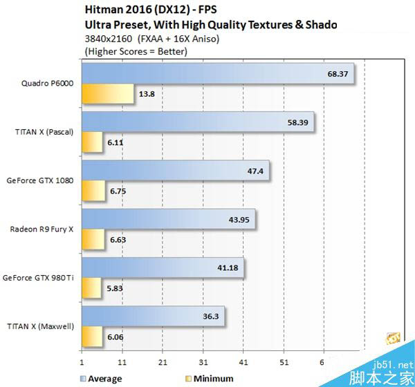 游戏方面,评测机构仅使用了《杀手2016》,P6000战胜了TITAN X,幅度竟然高达17%,成为新的游戏神卡。